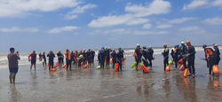 Detail: We will embark out to sea and to be able to swim almost 5k from the beach, we will make floating islands of safety on the high seas, with our fleet of elements and boats. As you like, play and swim enjoying the sea in its natural state. With us, you Podes!